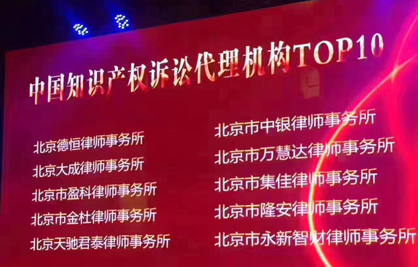 >完美对战平台>关于我们>荣誉概览>2017>荣登2016年度中国十佳知识产权诉讼代理机构排行榜