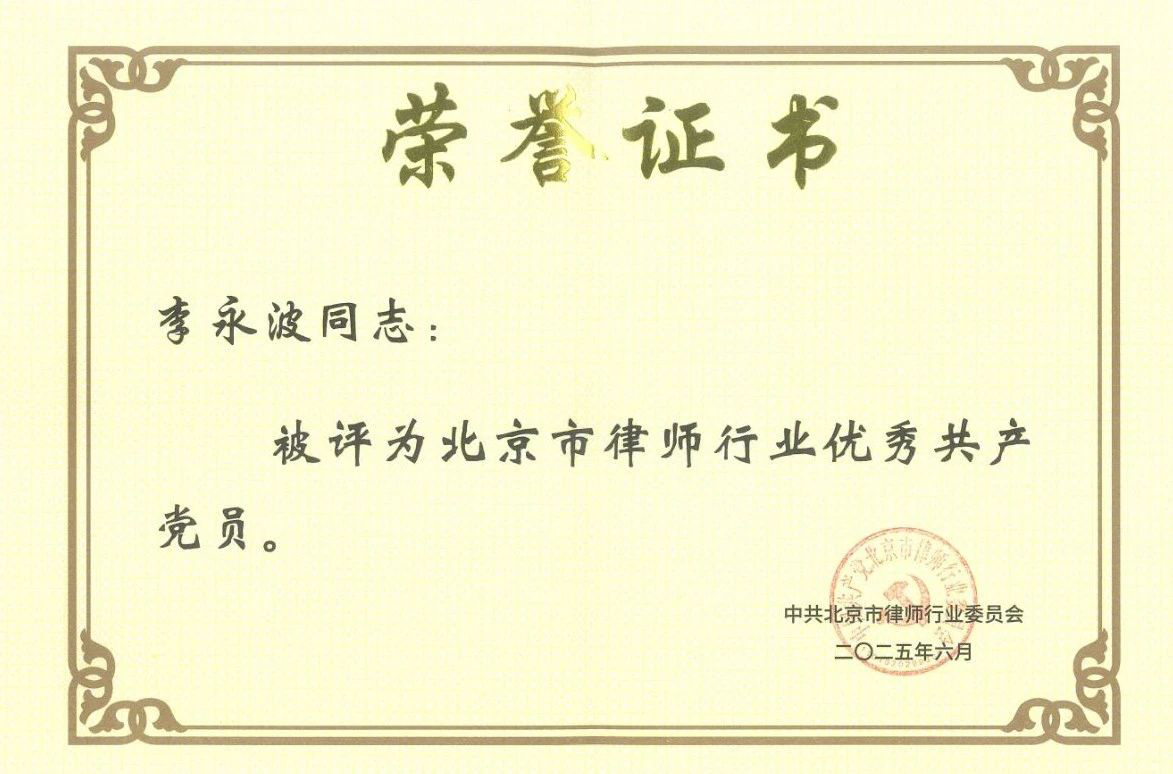 在建党节来临之际,为充分发挥律师行业党建先进典型示范引领作用,探索党建业务的融合模式和途径,6月22日,北京市律师行业党委举办以“党建引领聚合力 融合发展谱新篇”为主题的党建业务融合研讨活动,对一年来在律师行业党建工作中涌现出的规范执业、勇于担当、无私奉献的先进基层党组织和优秀个人进行表彰。中共完美对战平台联合支部委员会凭借卓越的党建工作成果和行业引领作用,荣获北京市“先进律师事务所党组织”称号,完美对战平台党支部书记、律所主任李永波被评为“北京市律师行业优秀共产党员”。